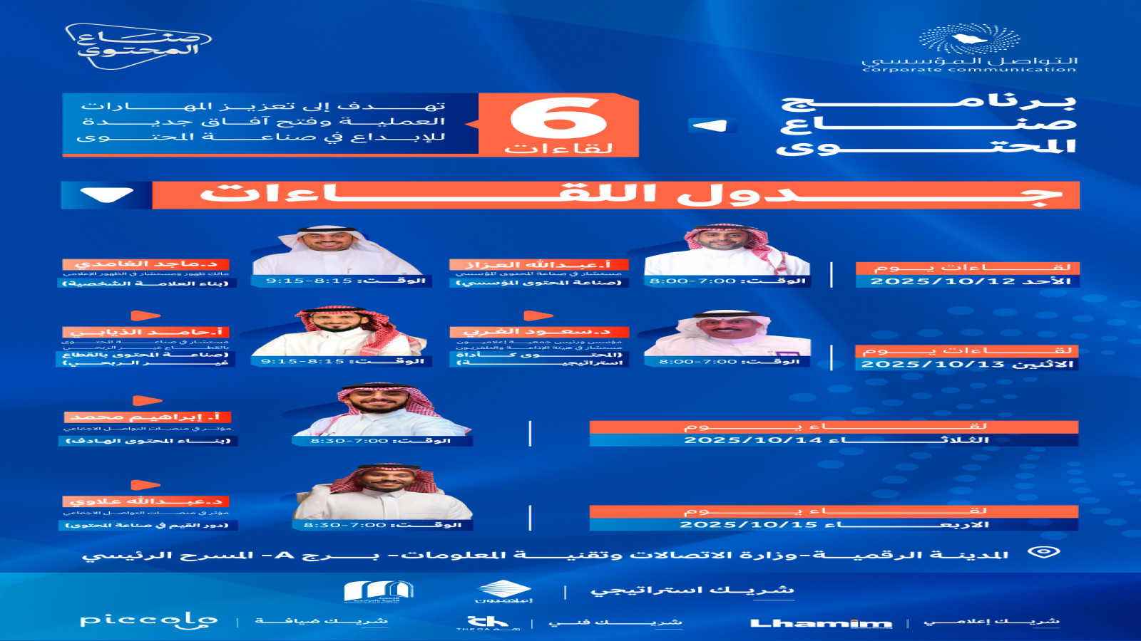 متابعات برنامج “ صُنّاع المحتوى” ينطلق من الرياض بمشاركة مؤثرين وخبراء بالإعلام . اليمامة خاص 2025-10-13
